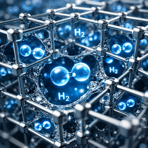 Negli ultimi anni la ricerca sta però esplorando una strada diversa: lo stoccaggio allo stato solido. Alcuni materiali sono in grado di assorbire l’idrogeno nella propria struttura, trattenendolo come una sorta di spugna microscopica. Questo approccio potrebbe rendere lo stoccaggio più sicuro, compatto ed efficiente.
